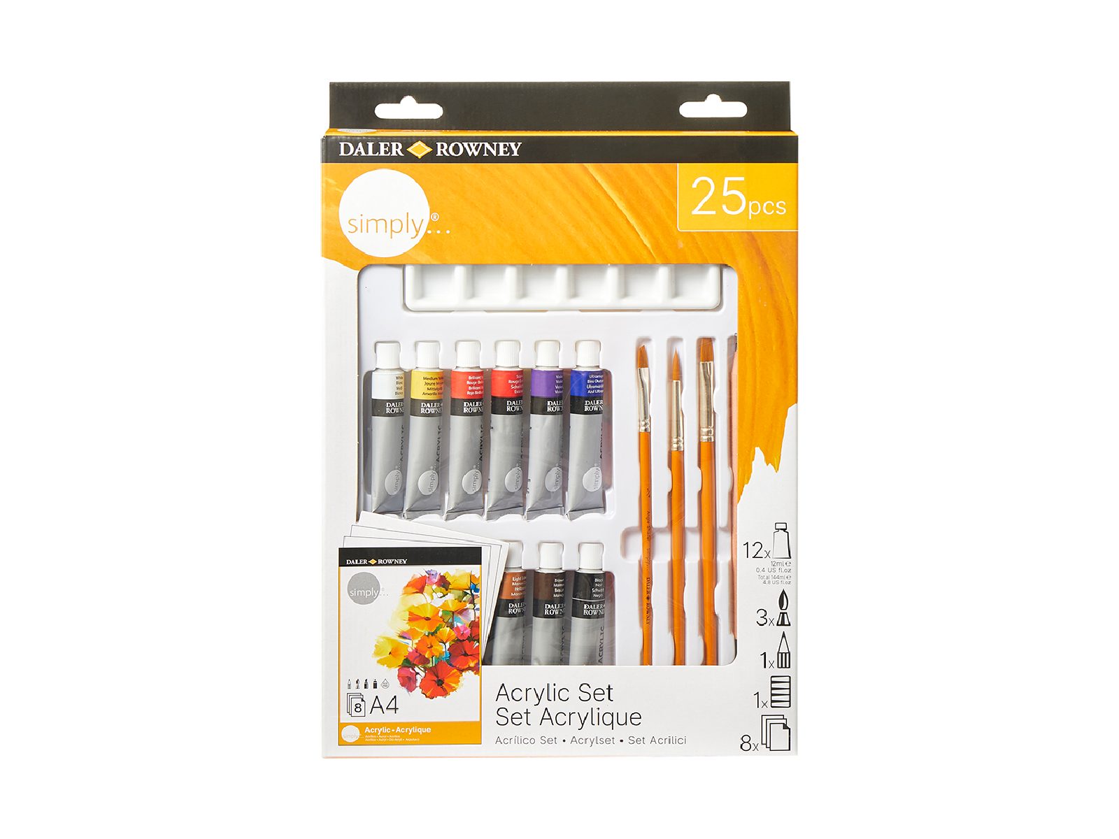 Simply akrilne boje su meke, na bazi vode, brzo se suše i sadrže visoko koncentrirane pigmente koji pružaju intenzivne tonove. Mogu se koristiti izravno iz tubice za bogate, jarke boje ili razrijediti vodom za prozračne slojeve i suptilne efekte. Njihova svestranost omogućuje rad na različitim podlogama, uključujući papir, karton i platno. Boje se lako miješaju s drugim Daler Rowney akrilima, otvarajući beskrajne mogućnosti za stvaranje nijansi.