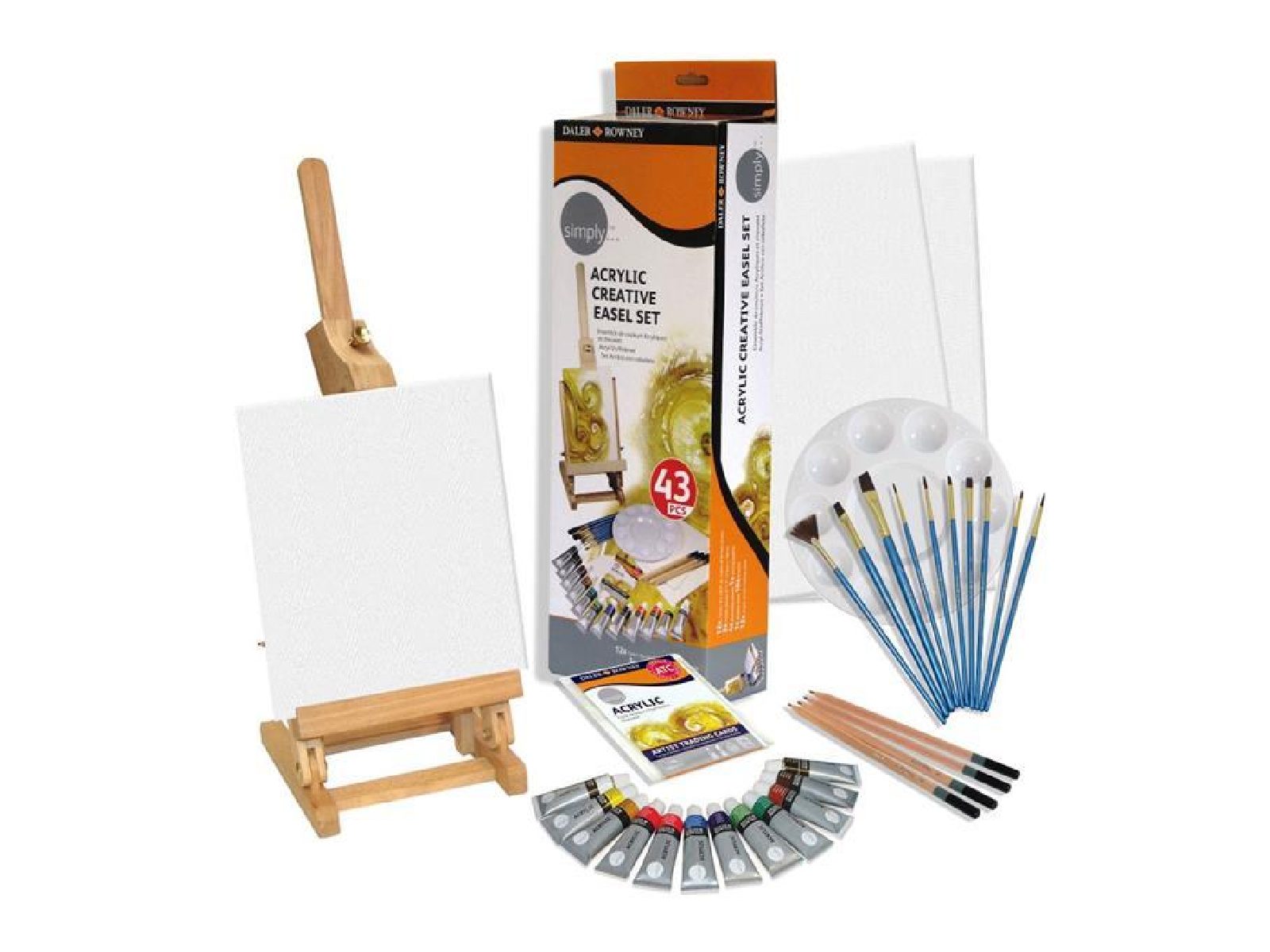 Ovaj komplet nudi sve potrebno za istraživanje akrilnog slikanja u praktičnom paketu. Zahvaljujući kvaliteti i dugogodišnjoj tradiciji brenda Daler Rowney, Simply Acrylic Creative Easel Set pruža savršen omjer cijene i kvalitete. Idealan je poklon za sve kreativce i ljubitelje umjetnosti koji žele započeti ili unaprijediti svoje vještine.