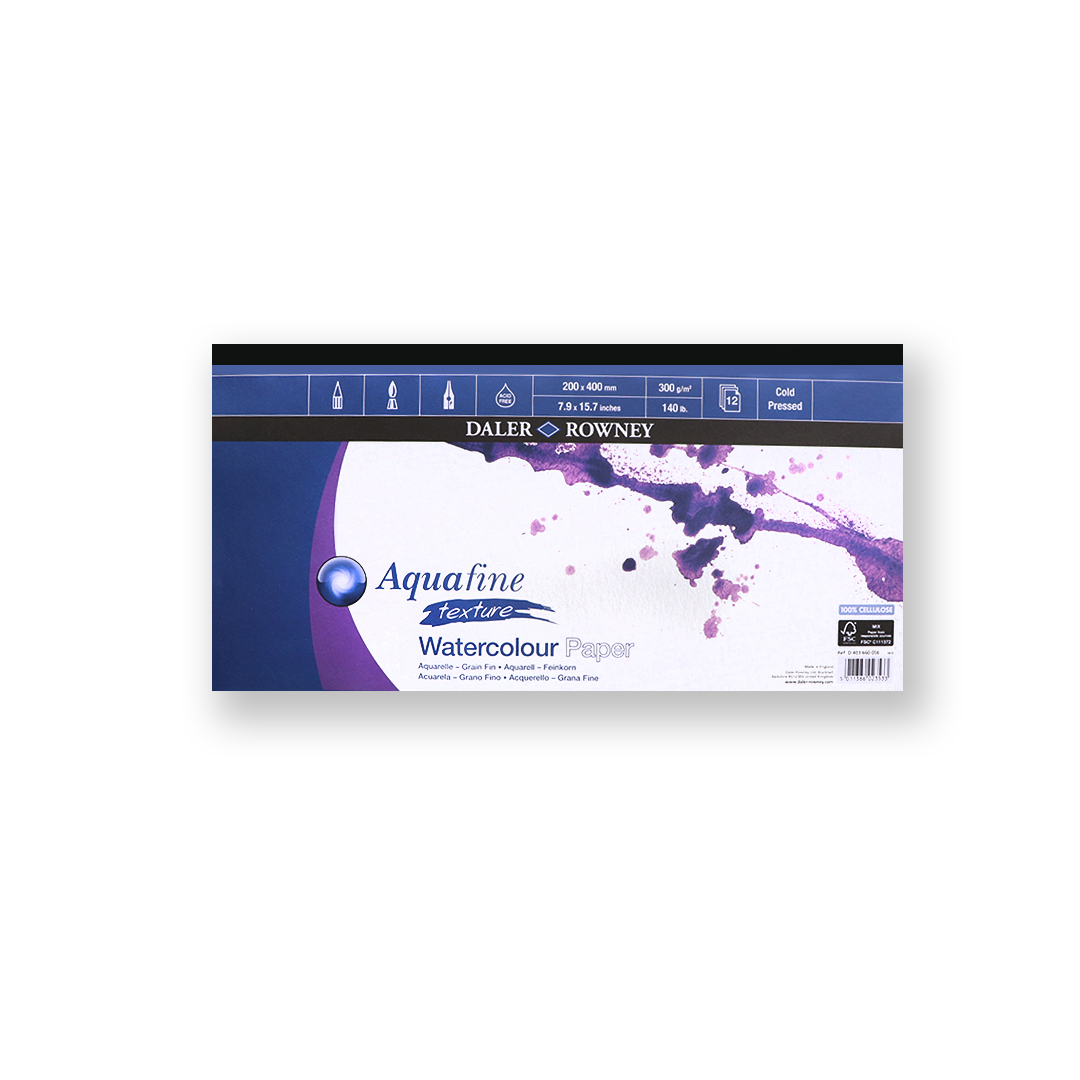 Akvarelni papiri Aquafine od Daler-Rowneya izrađeni su od 100% celuloze. Ovo je 300 g/m2 papir bez kiselina i puferiran kalcijevim karbonatom kako bi se spriječilo propadanje boje tijekom vremena. Ovaj akvarel papir idealan je kako za studente tako i za profesionalce.