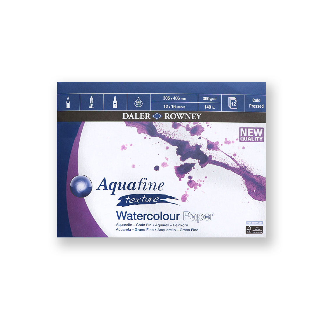 Akvarelni papiri Aquafine od Daler-Rowneya izrađeni su od 100% celuloze. Ovo je 300 g/m2 papir bez kiselina i puferiran kalcijevim karbonatom kako bi se spriječilo propadanje boje tijekom vremena. Ovaj akvarel papir idealan je kako za studente tako i za profesionalce.