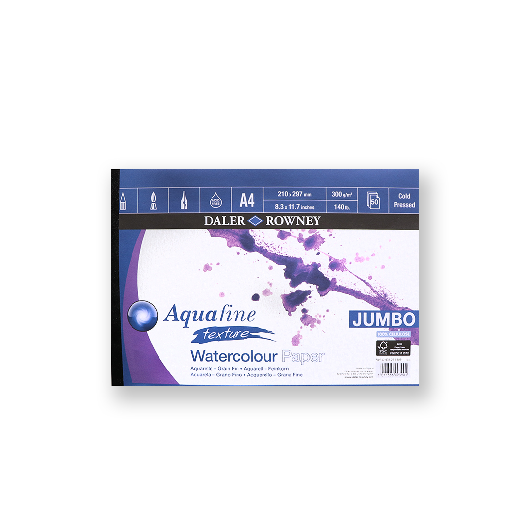 Akvarelni papiri Aquafine od Daler-Rowneya izrađeni su od 100% celuloze. Ovo je 300 g/m2 papir bez kiselina i puferiran kalcijevim karbonatom kako bi se spriječilo propadanje boje tijekom vremena. Ovaj akvarel papir idealan je kako za studente tako i za profesionalce.