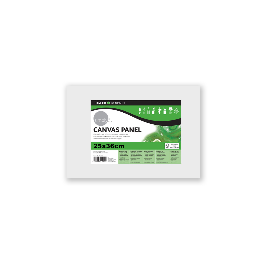 Kaširano platno Simply od Daler-Rowney izrađeno je od platna srednjeg zrna, teksturirano, 250 g, trostruko pripremljeno i spremno za upotrebu u širokom rasponu veličina.
