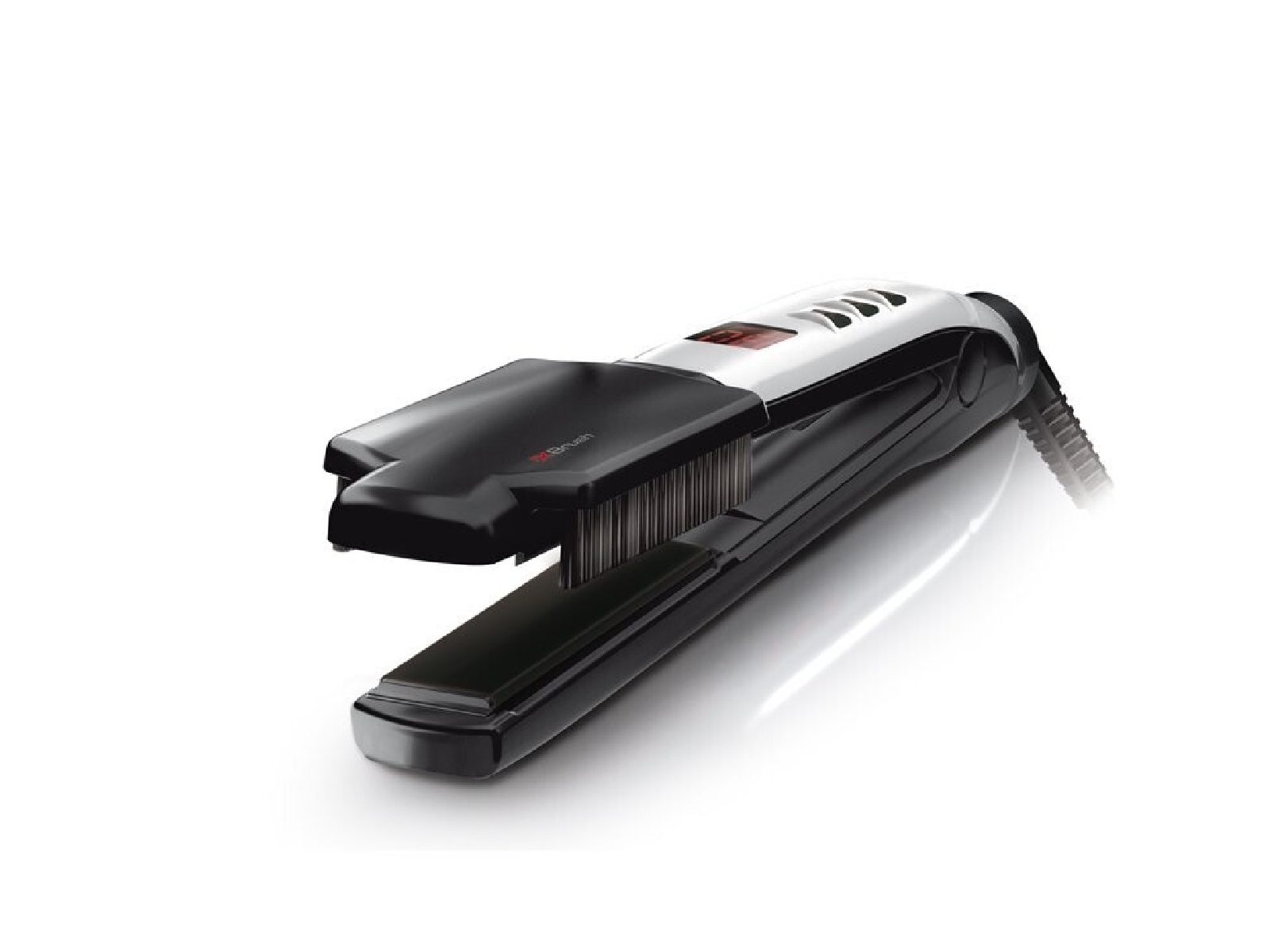 Ovaj inovativni sustav za ravnanje i četkanje kose kombinira praktičnost, sigurnost i vrhunske rezultate kako biste brzo i jednostavno postigli savršeno ravnu i sjajnu kosu. Pegla koristi Ionic care tehnologiju koja osigurava da kosa ostane glatka i sjajna bez nepoželjnog elektriciteta te ne uzrokuje izbljeđivanje boje kose.