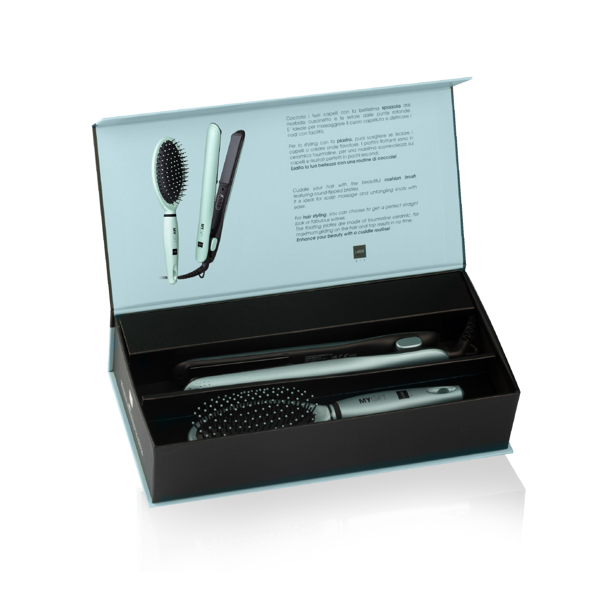 Set za ravnanje i njegu kose MY GIFT – Pegla i četka Cotton Candy