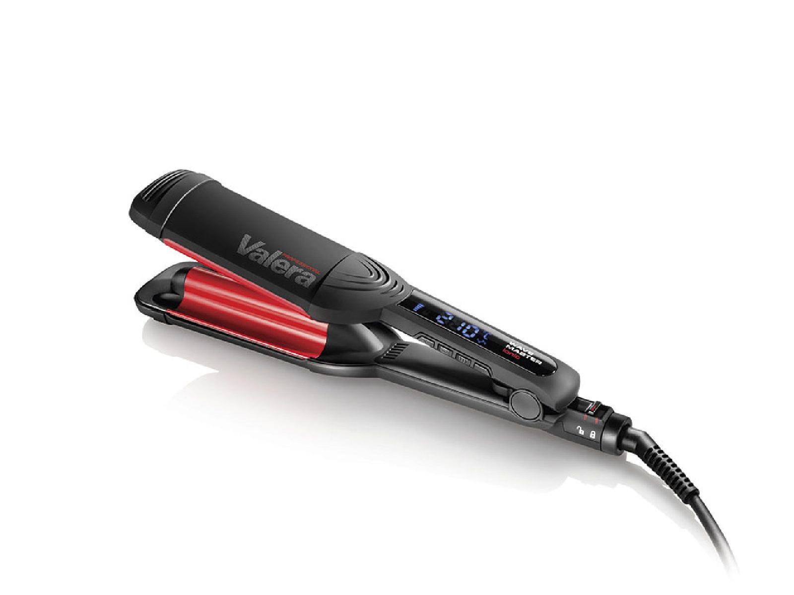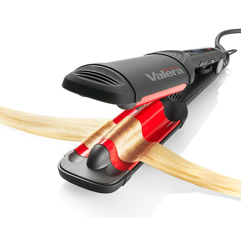 Valera pegla za valove Wave Master profesionalni je uređaj za oblikovanje glamuroznih valova s keramički premazanim pločama koje se brzo zagrijavaju i održavaju konstantnu temperaturu. Negativno nabijeni ioni osiguravaju sjajnu kosu bez neposlušnosti i statičkog elektriciteta tijekom oblikovanja. Elektronička kontrola temperature putem digitalnog zaslona u osam koraka od 140°C do 210°C te automatsko isključivanje nakon 60 minuta za maksimalnu sigurnost. Površina s neklizajućim soft-touch premazom, hladni vrhovi, opcija zaključavanja ploča i profesionalni okretni kabel duljine 3 metra upotpunjuju profesionalnu opremu.