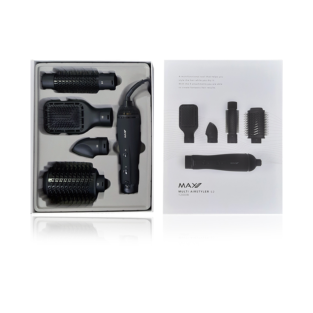 Četka za sušenje i oblikovanje kose Max Pro Multi Airstyler S2 ultimativni je višenamjenski alat koji omogućuje jednostavno sušenje i oblikovanje kose bez korištenja dodatnih četki za kosu ili pegle. Uz četiri različita dodatka koja dolaze u paketu možete stvoriti najraznovrsnije frizure u tren oka bilo da preferirate kovrče, ravnu kosu, klasičnu voluminoznu fen frizuru ili trendi valove.