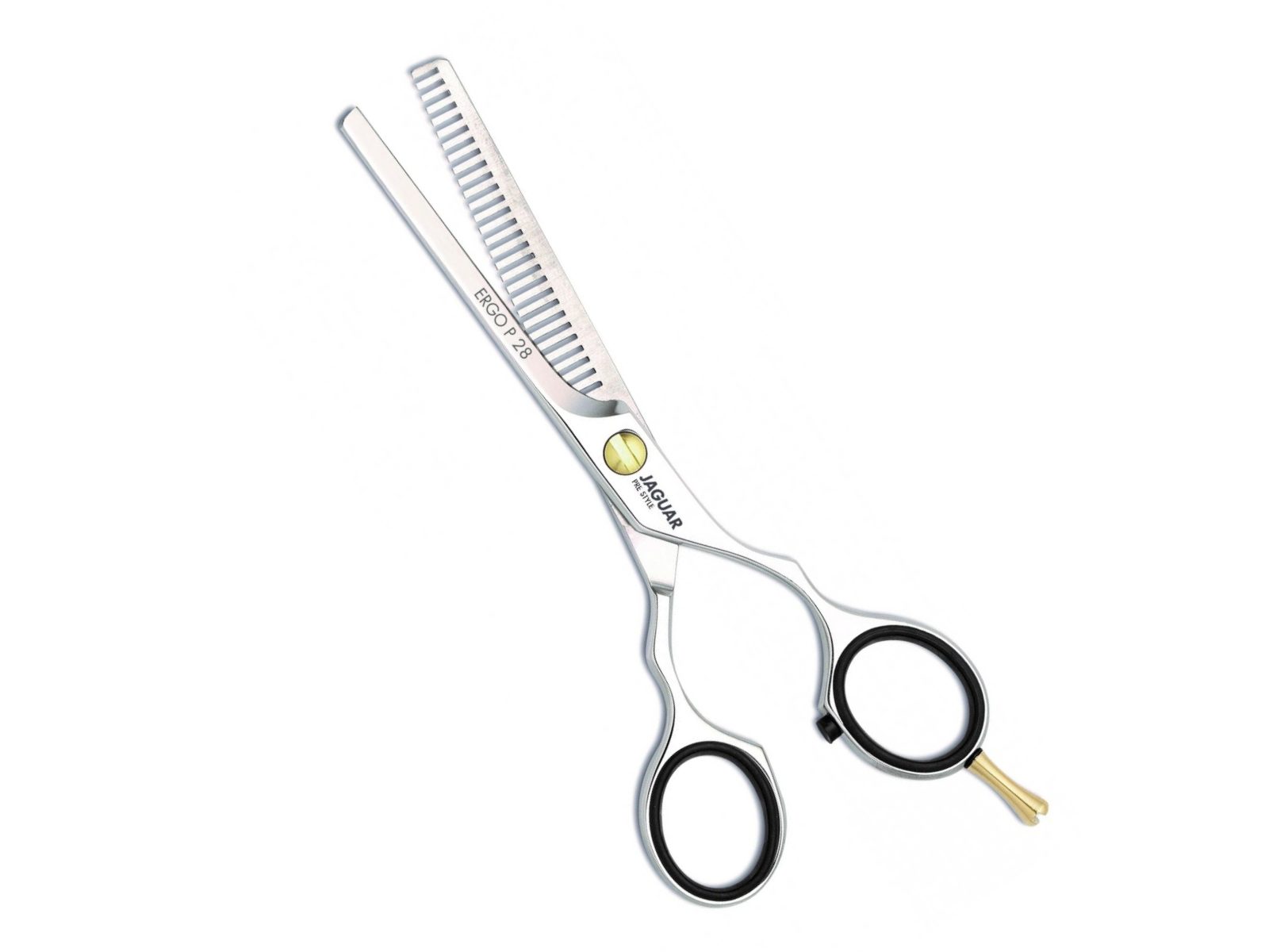 Efilirke JAGUAR ERGO P 28 u veličini 5.5” odlikuju se poliranom završnom obradom i klasičnim dizajnom, što ih čini idealnim osnovnim modelom za svakog frizera. S 28 zubaca za stanjivanje, ERGO P 28 omogućuju precizno oblikovanje kose, a dostupne su i u satenskoj završnoj obradi kao ERGO 28. Efilirke ERGO P 28 ima klasične oštrice s ravnim kutom rezanja koje pružaju iznimnu oštrinu. S 28 zubaca za stanjivanje, ove škare omogućuju detaljno stanjivanje kose i pružaju preciznost pri svakom rezu. Izrađene su od nehrđajućeg  čelika i nude dugotrajnu kvalitetu i pouzdanost. Vijak i naslon za prst u boji mjedi daju vizualno privlačan kontrast s poliranom završnom obradom.