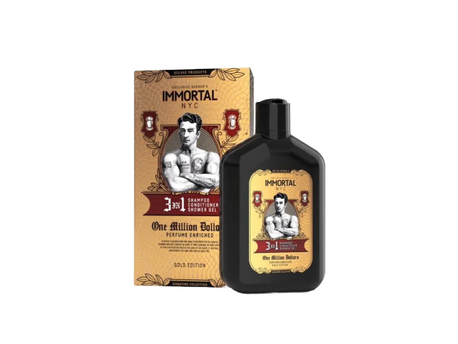 Višenamjenski 3-u-1 šampon, regenerator i gel za tuširanje za muškarce nudi nježno i temeljito čišćenje vlasišta, regeneraciju kose i tijela ostavljajući prekrasan muževan miris koji će vas pratiti tijekom cijelog dana. Aromatična mješavina karakteristična za cijelu kolekciju “One Million Dollars”! sadrži gornje note grejpa, mandarine i metvice, začinjene cimetom i ružinim uljem. Donje note jantara, pačulija i kože zaokružuju ovaj muževan miris.