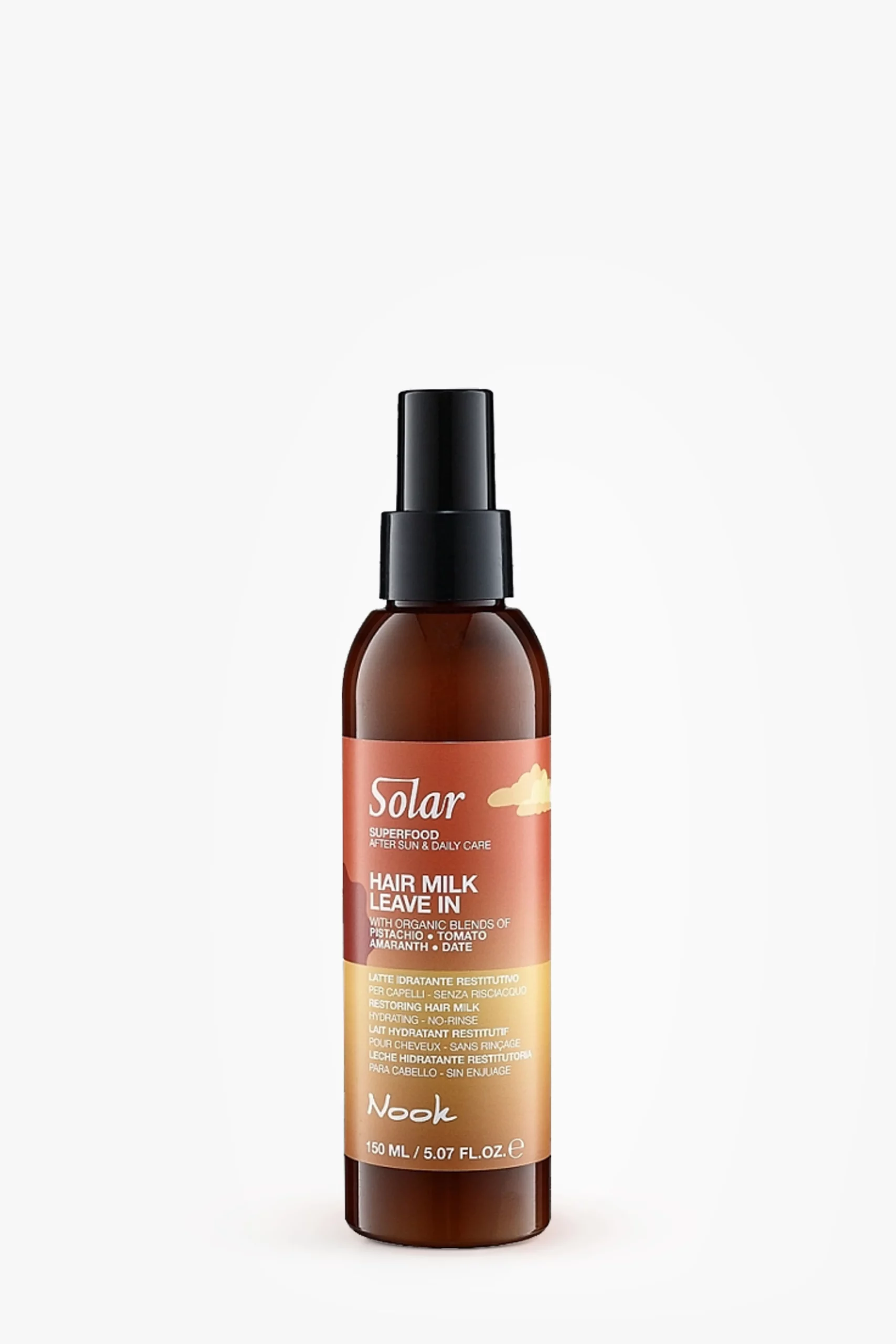 Hair Milk Leave In (150 ml): Leave-in sprej koji se ne ispire. Štiti kosu od UV zraka, olakšava raščešljavanje, sprječava frizz i čuva boju kose.