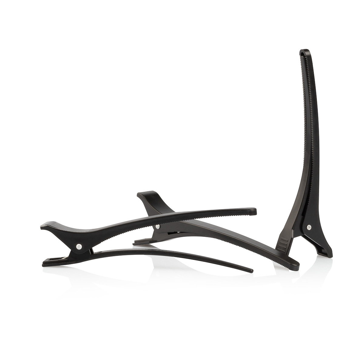 Plastične štipaljke za kosu dužine 120 mm savršen su alat za precizno i čvrsto razdvajanje pramenova tijekom šišanja, feniranja, bojanja ili bilo kojeg drugog frizerskog tretmana. U pakiranju se nalazi 12 komada štipaljki u klasičnoj crnoj boji, što ih čini elegantnim i profesionalnim dodatkom svakom radnom stolu.