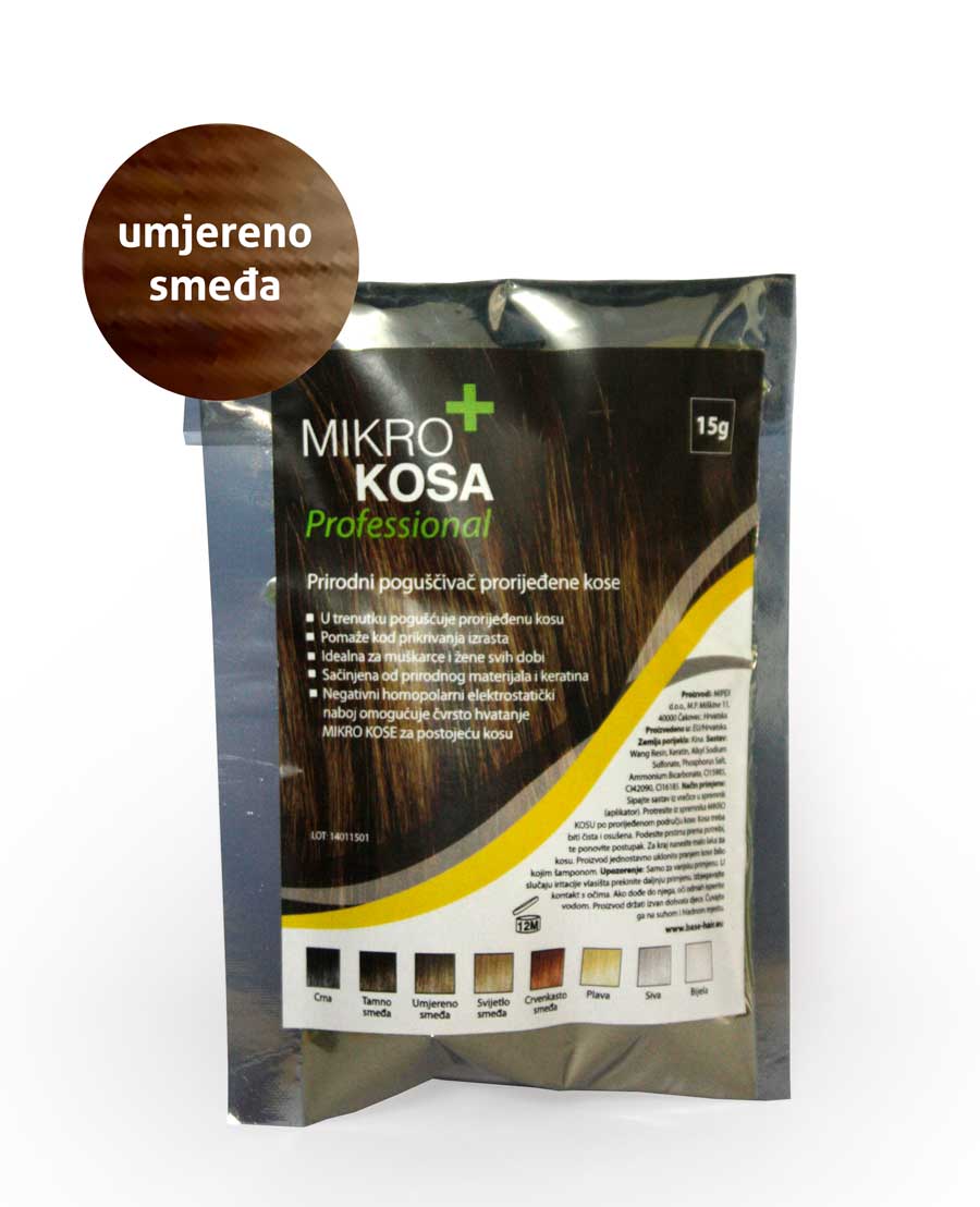 MIKRO KOSA je revolucionarni proizvod za prikrivanje izrasta i prorijeđene kose razvijen od strane stručnjaka. Sastoji se od biljnih vlakana i keratina od kojeg je sastavljena i prirodna ljudska kosa.