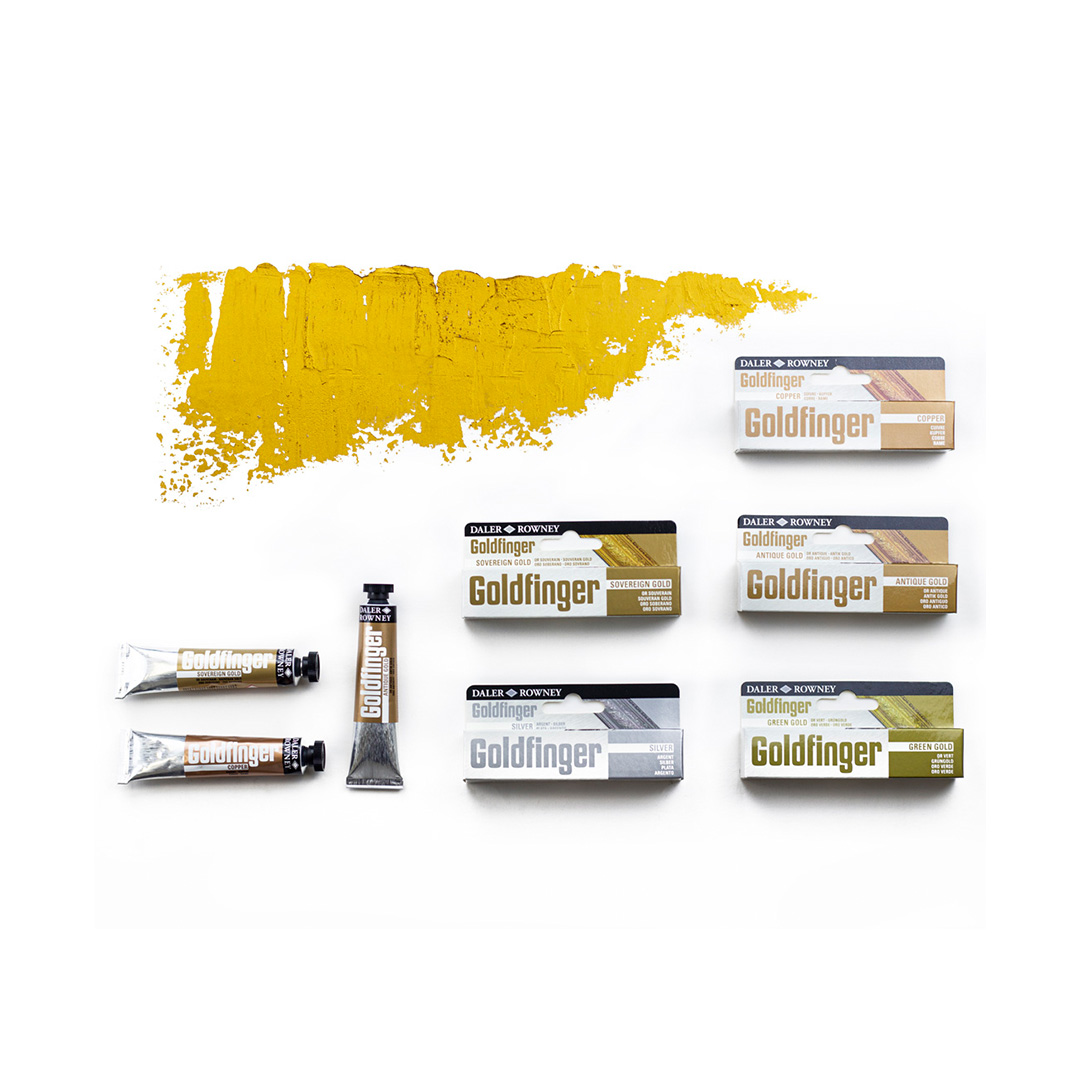 Goldfinger je višenamjenska, rub-on metalna pasta vrhunske kvalitete, savršena za pozlatu, restauraciju i umjetničke projekte. Proizvodi ju renomirani britanski proizvođač Daler-Rowney, a dostupna je u pet elegantnih nijansi: Antique Gold, Sovereign Gold, Green Gold, Copper i Silver.