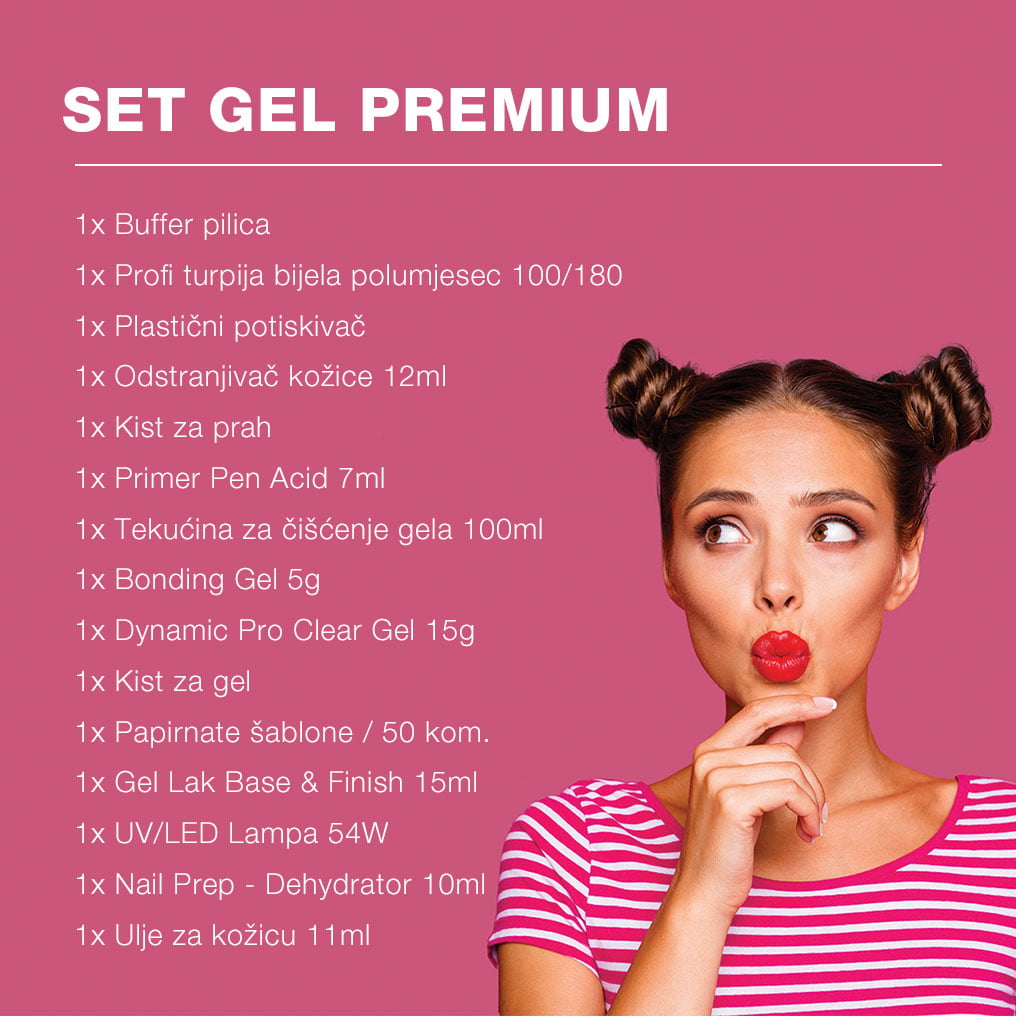 U Setu Gel Premium pronaći ćete SVE što vam treba za optimalnu pripremu noktiju, stvaranje savršenih gel noktiju i njegu noktiju.