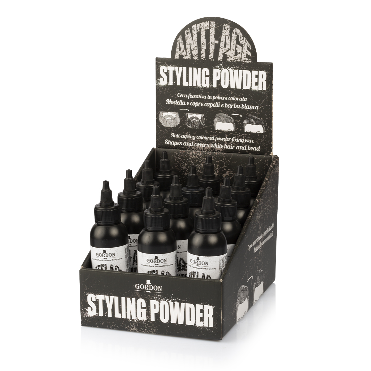 Crni puder za styling kose i brade praktičan je i inovativan proizvod koji objedinjuje učinak fiksiranja, prekrivanja sijedih vlasi i dodavanja volumena. Zahvaljujući laganoj praškastoj formuli, ovaj puder za styling kose/brade ne otežava vlasi, već pruža prirodan mat završetak i mladolik izgled.