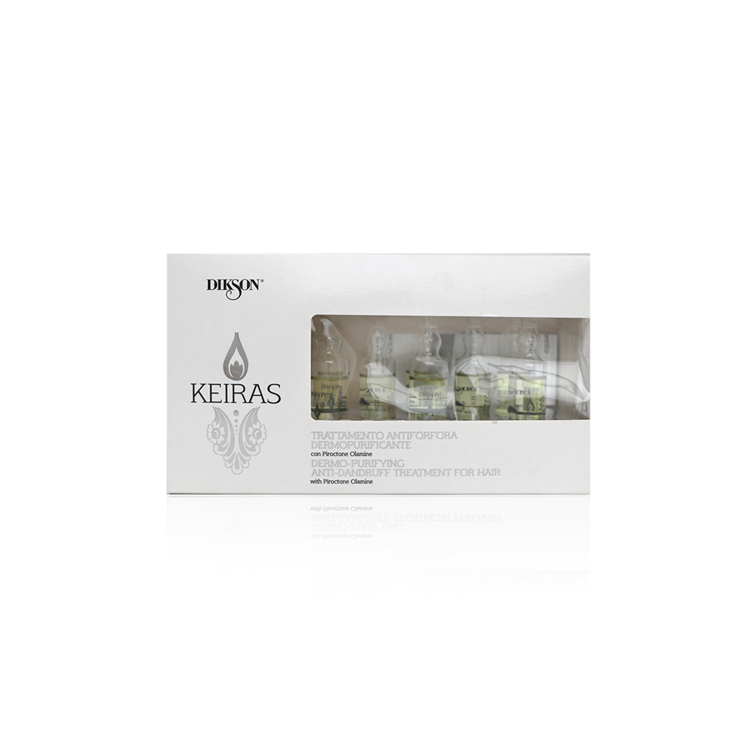 Ampule protiv prhuti Keiras, 8x10ml. Ampule sa pirokton olaminom, vodotopivim antimikrobnim agensom koji djeluje na prhut i vlasište sebuma. Ampule preventivno djeluju na stvaranje bakterija i gljivica. Zahvaljujući dezodorirajućem djelovanju ovaj tretman ostavlja kosu zdravom i punom vitalnosti.