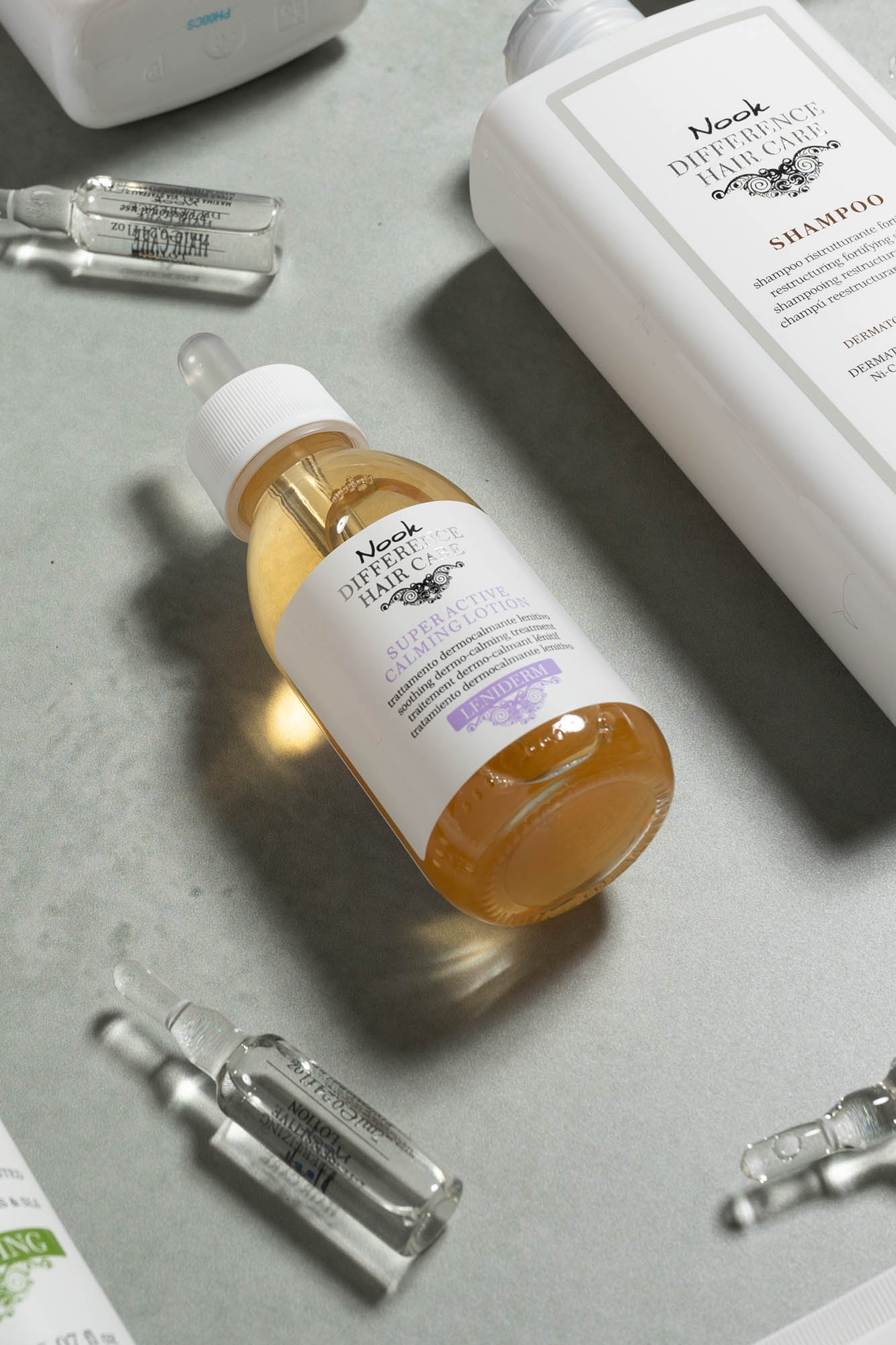Nook Leniderm Super-Active Calming Lotion profesionalni je losion za osjetljivo vlasište koji pruža trenutno i dugotrajno olakšanje od iritacija, crvenila, svrbeža i osjećaja napetosti kože glave. Zahvaljujući sinergiji prirodnih emolijentnih i umirujućih aktivnih sastojaka, losion pomaže obnoviti ravnotežu i zaštitnu barijeru vlasišta te sprječava ponovno pojavljivanje iritacija.