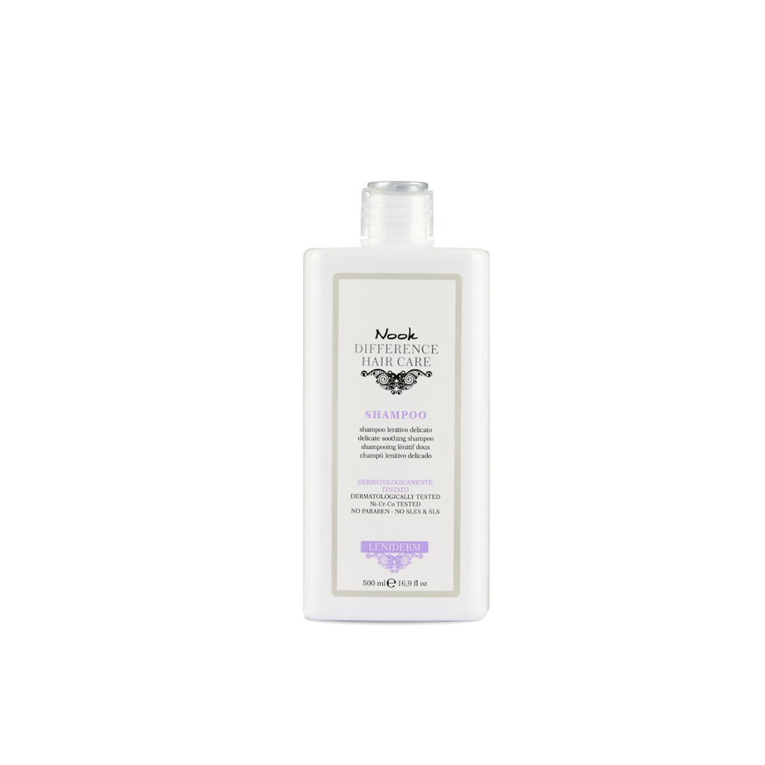 Nook Leniderm Delicate Calming Shampoo nježni je šampon za osjetljivo vlasište posebno razvijen za iritiranu, osjetljivu i crvenilu sklonu kožu glave. Zahvaljujući kombinaciji prirodnih umirujućih i zaštitnih sastojaka, pruža trenutno olakšanje vlasištu koje pokazuje znakove napetosti, svrbeža ili nelagode.
