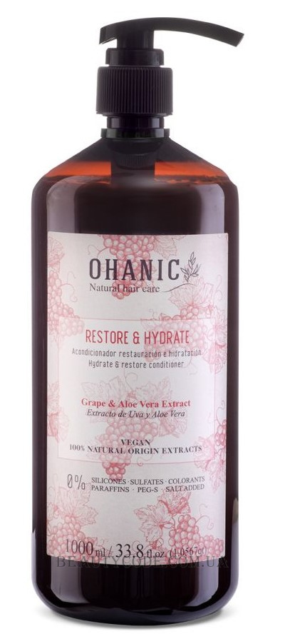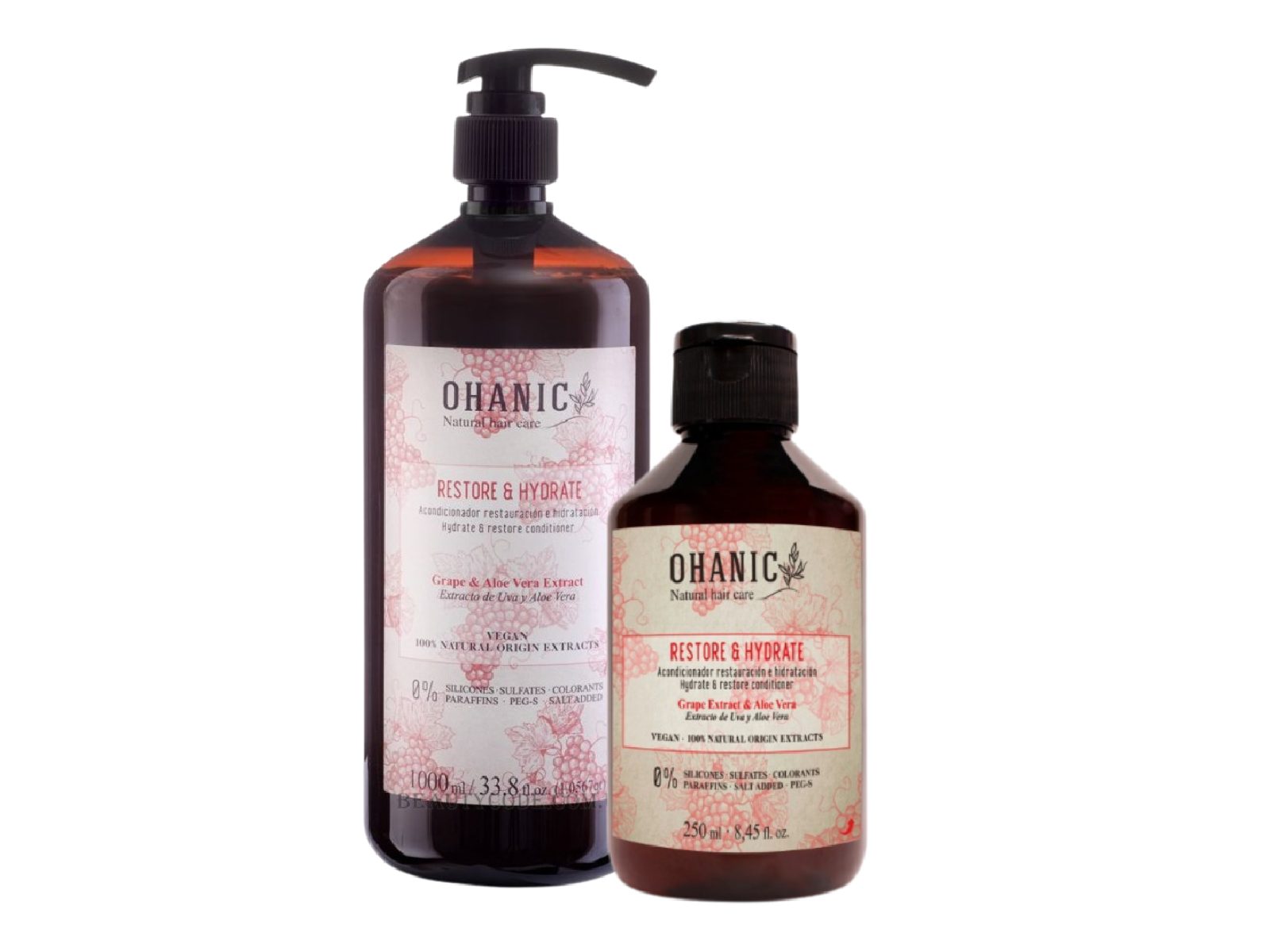 Obnavljajući i hidratantan regenerator za obnovu kose Ohanic obogaćen je ekstraktima aloe vere i grožđa, koji intenzivno hidratiziraju kosu i pružaju mekoću i sjaj. Pogodan je za sve tipove kose, posebno za suhu kosu. Može se koristiti u kombinaciji s cijelom linijom proizvoda za njegu kose Ohanic. Sastav ovog regeneratora sadrži čak 98,24% prirodnih sastojaka i pogodan je za vegane.