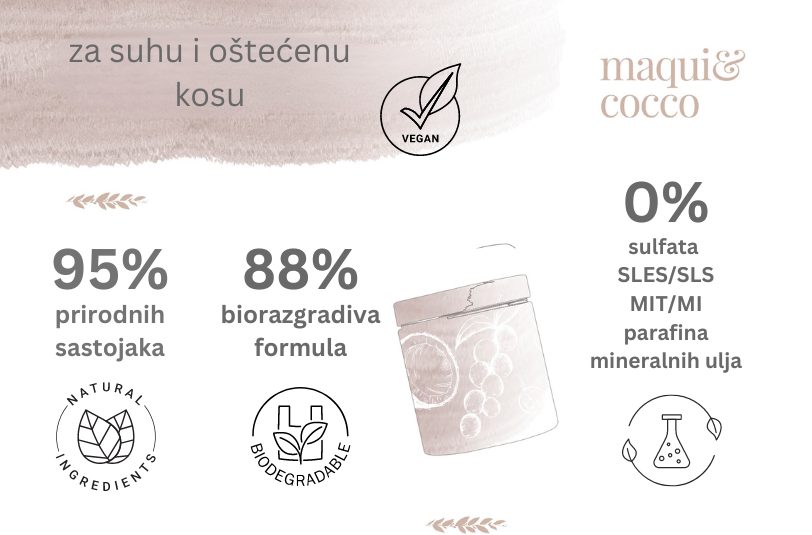 Maska za intenzivan tretman suhe kose Maqui&Coco bogate kremaste teksture trenutačno oživljava suhu i beživotnu kosu